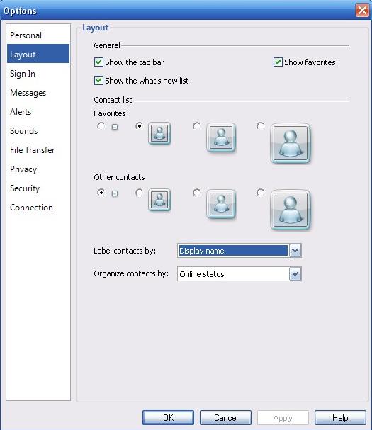 valikute all uus leht "layout" kus saab muuta erinevaid seadeid näiteks kuidas reastatakse su kontaktlist, db piltide suurused, ja erinevate lisa funktsioonide näitamine ja peitmine